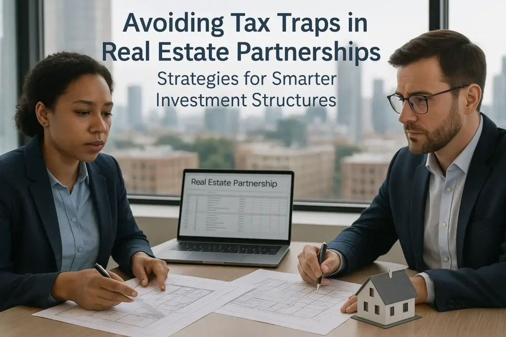The process of negotiating real estate partnerships can be very rewarding however tax traps usually lie in the fine print. To prevent the expensive errors, the partners should clarify the terms of sharing use of profit, keep up clear accounting, and keep up with the changes in the taxation laws. With strategic planning, appropriate structuring of the entity, and professional tax advice, potential liabilities can be converted into long term benefits. Concisely, preemptive tax planning is major in maintaining profitable compliant real estate partnerships.