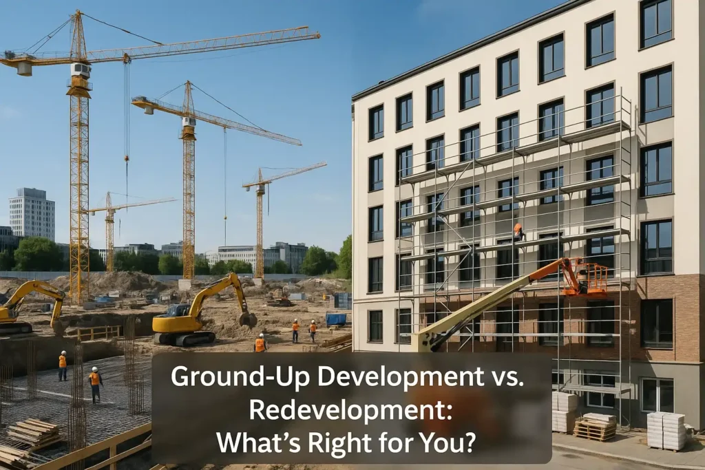 Both ground-up development and redevelopment can create wealth in real estate, but the right choice depends on where you invest, your financial strength, and your long-term vision. Redevelopment offers speed and location advantage, while ground-up development gives you full creative freedom and long-term value creation.